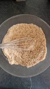 - Dans un autre saladier verser 200g de poudre d’amandes, 100g de sucre, 4 gouttes d’arôme d’amande, 1 c.à.c d’extrait de vanille puis mélanger le tout rapidement.