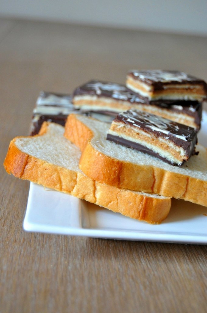 • Étaler le mélange beurre de cacahuète/crêpes dentelles sur la brioche.