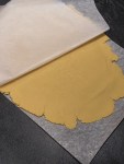 - Étaler la pâte sur 4mm d’épaisseur entre deux feuilles de papier cuisson.
