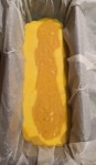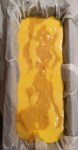 - Verser une couche de pâte vanillée, sur toute la longueur du moule puis une couche de pâte au praliné noisette.