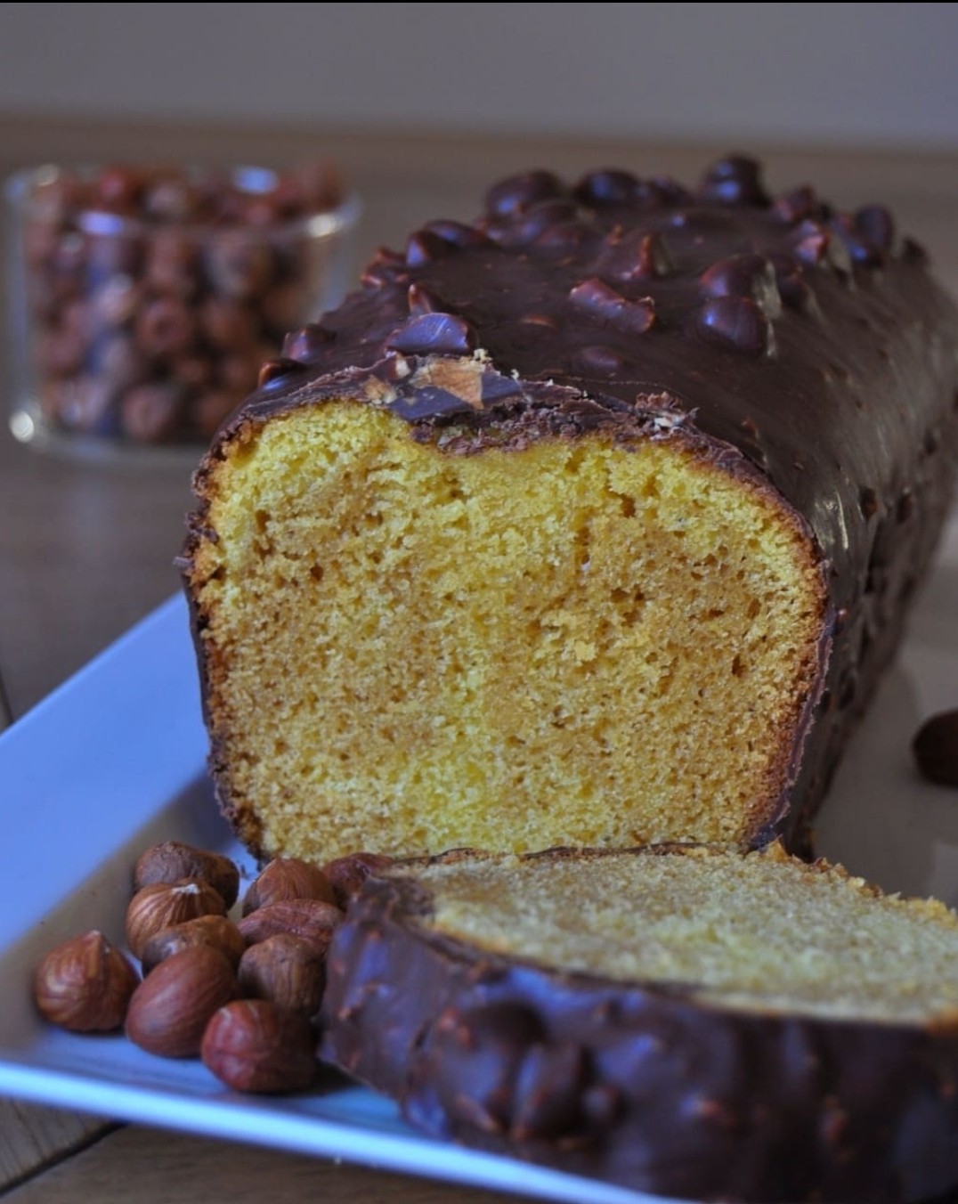 Je me suis clairement inspirée du fameux cake marbré de Cyril Lignac ! J’ai biensur fait quelques petits changements, histoire qu’il soit comme dans mes rêves : des noisettes, de la vanille, du praliné noisettes et du bon chocolat noir pour le glacage !!