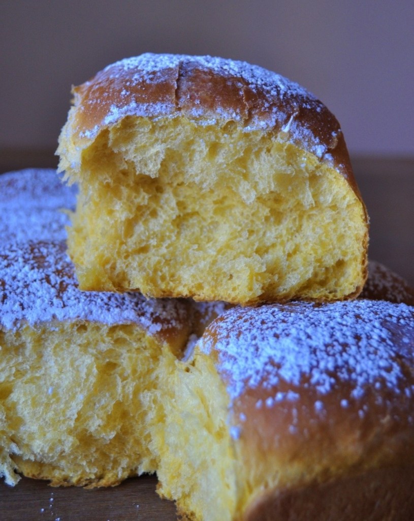 Aujourd’hui je tente la brioche à la patate douce : une brioche plus légère car elle ne contient que très peu de beurre et peu de sucre ! La purée de patate douce lui apporte tout le moelleux souhaité. La texture de cette brioche est juste folle, exquise et fantastique : un vrai nuage en bouche 😋