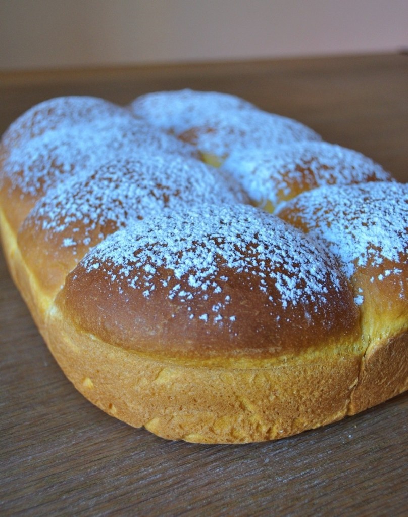 • Quand la brioche a refroidi la saupoudrer de sucre glace.
