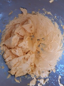 - Ajouter 200g de sucre glace tamisé et fouetter à vitesse rapide jusqu’à ce que la crème est une belle consistance.