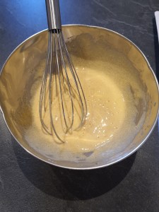 - Dans un premier saladier fouetter 5 jaunes d’œufs et 150g de sucre jusqu’à l’obtention d’un mélange épais et crémeux.