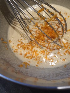 - Ajouter les zestes de deux oranges et le zeste d’un citron. Bien mélanger.