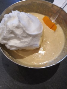 - Puis les incorporer délicatement à la dernière préparation, en soulevant la pâte à l’aide d’une maryse.
