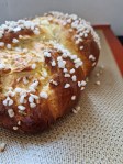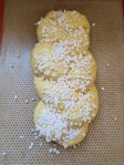• A l’aide d’un pinceau alimentaire dorer la brioche puis saupoudrer de sucre perlés