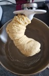• Quand votre pâte se décolle de la cuve et s’accroche au crochet, la décoller à l’aide d’une maryse, pour la faire tomber dans la cuve.