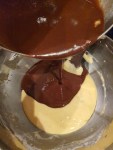 - Ajouter le chocolat et le beurre fondu au mélange précédent et fouetter.