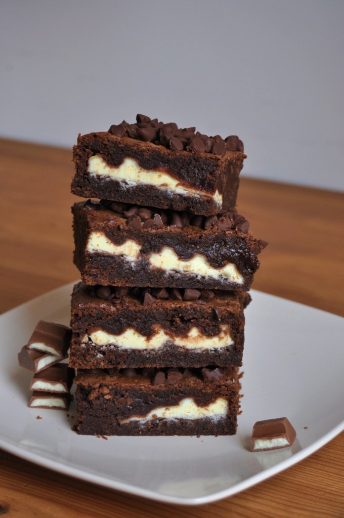Ce super brownie se compose de pâte à brownie au bon goût de chocolat noir, avec des Kinder au milieu et le tout recouvert de pépites de chocolat !!