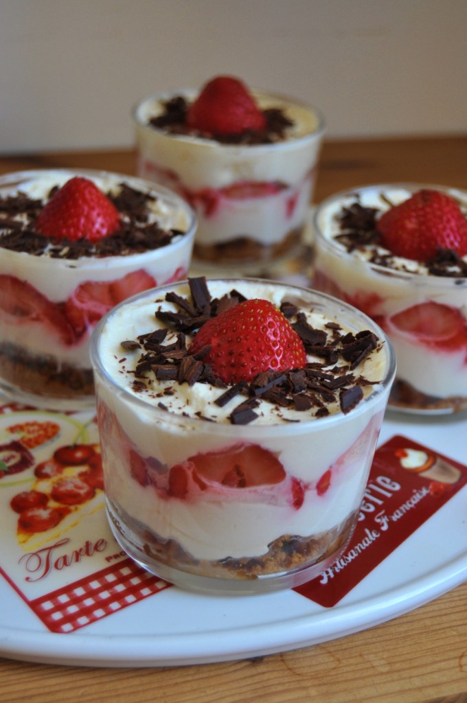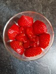 - Couper chaque fraise en 2 puis les déposer coller à la parois de la verrine.