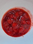 - Couper en deux les 200g de fraises restantes , les déposer dans une petite casserole avec 20g de sucre. Mélanger.