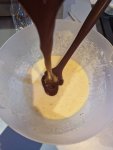 - Puis pour finir verser le mélange chocolat+crème et mélanger une dernière fois.