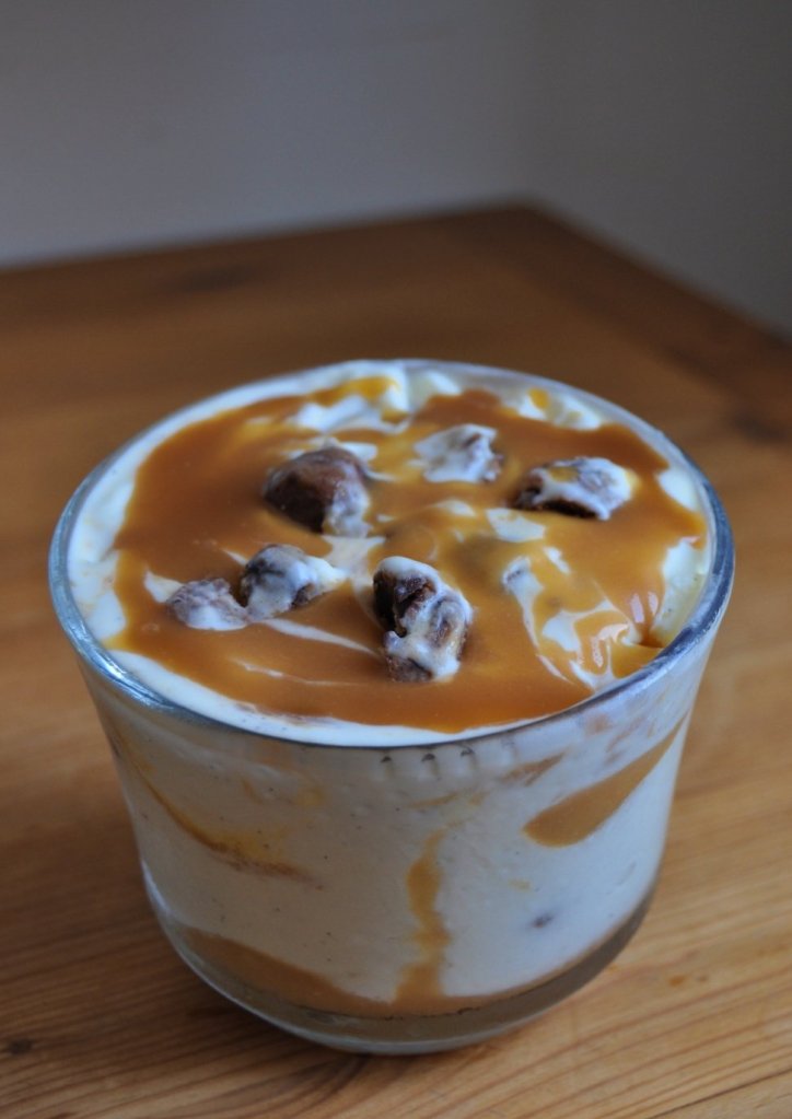• Déposer un peu de caramel beurre-salé au fond de chaque verrines.