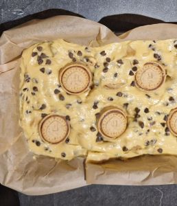 • Déposer 6 biscuits entiers et quelques pépites de chocolat.