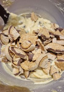 • Briser en morceaux 10 biscuits Nutella et les ajouter à la pâte.