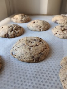 - À la sortie du four, (même si les cookies semblent encore mous) les-laisser refroidir 10 min sur la plaque de cuisson. Il est important de ne pas sauter cette étape.