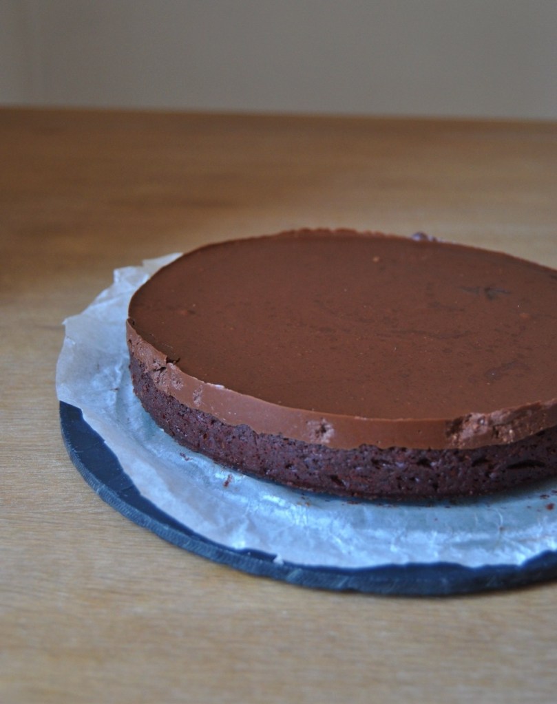 - Quand le gâteau a bien refroidi (toujours dans son moule), verser le glaçage dessus.