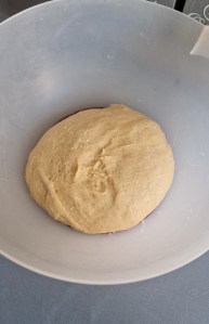 - Pétrir 5min à petite vitesse puis 5min à vitesse moyenne jusqu’à ce que le beurre soit bien incorporé à la pâte.
