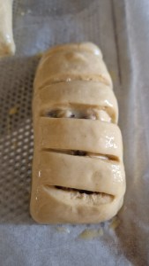 - Rouler la pâte pour former la briochette. Incisions au dessus et jointure en dessous.