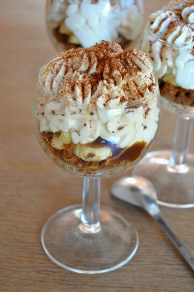 • Les Banoffee en verrines sont prêts, régalez-vous !