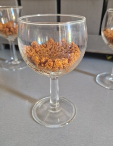 • Ajouter 1 bonne c.à.s de confiture de lait dans chaque verrine et réserver.