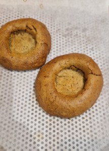 • À la sortie du four patienter 3 min, puis écraser légèrement le centre du cookie pour y faire une empreinte.
