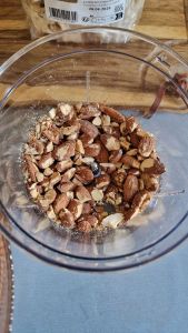- Hacher grossièrement 100g d’amandes et les ajouter à la préparation chocolatée.