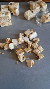 - Couper en petits carrés 125g de nougat tendre.