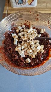 - Briser 125g de biscuits et les ajouter également à la préparation chocolatée.