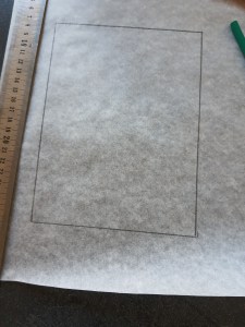 • Prendre une feuille de papier cuisson et dessiner dessus un rectangle de 15 cm x 20 cm.