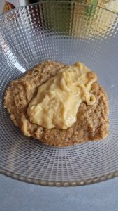 • Placer, en enfonçant légèrement, une fève (ou plusieurs!) dans la crème.