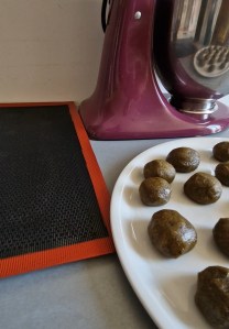 - Humidifier tres légèrement vos mains et former de petites boules de pâte (je dose 1/2 cuillère à soupe par biscuit).