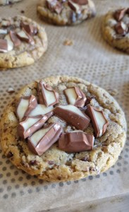 - Déposer immédiatement les morceaux sur les cookies encore chauds afin qu’ils fondent délicatement.
