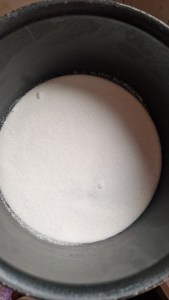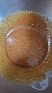 • Dans le  bol du robot ou dans un saladier, mélanger 100 g de vergeoise brune, 60 g de sucre en poudre.