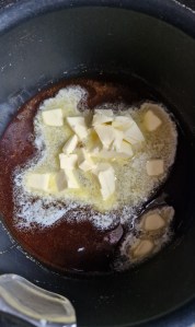 • Ajouter 40 g de beurre demi-sel en remuant au fouet.